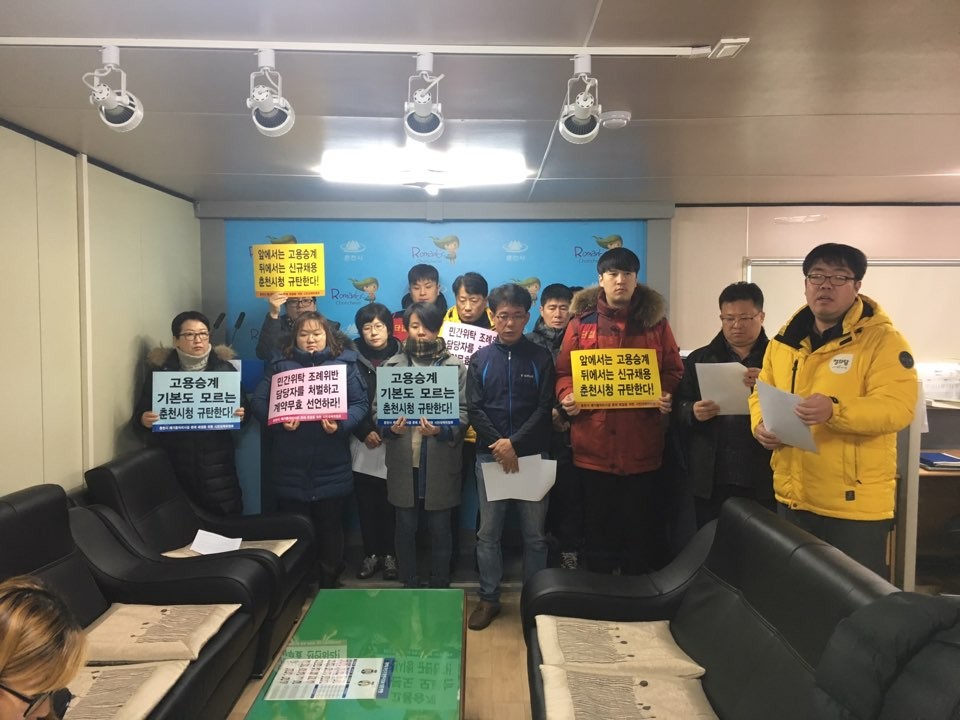 "춘천시는 폐기물처리시설 노동자 #고용승계 의무 이행하라" 12월 14일,춘천시청 기자실에서 기자회견진행했습니다. 주최 : 춘천시 폐기물처리시설 문제 해결을 위한 시민대책위원회 춘천시가 민간위탁 업체를 새로 선정하는 과정에서 사전에 반드시 거쳐야 하는 행정절차에서는 고용승계 의무를 위탁...