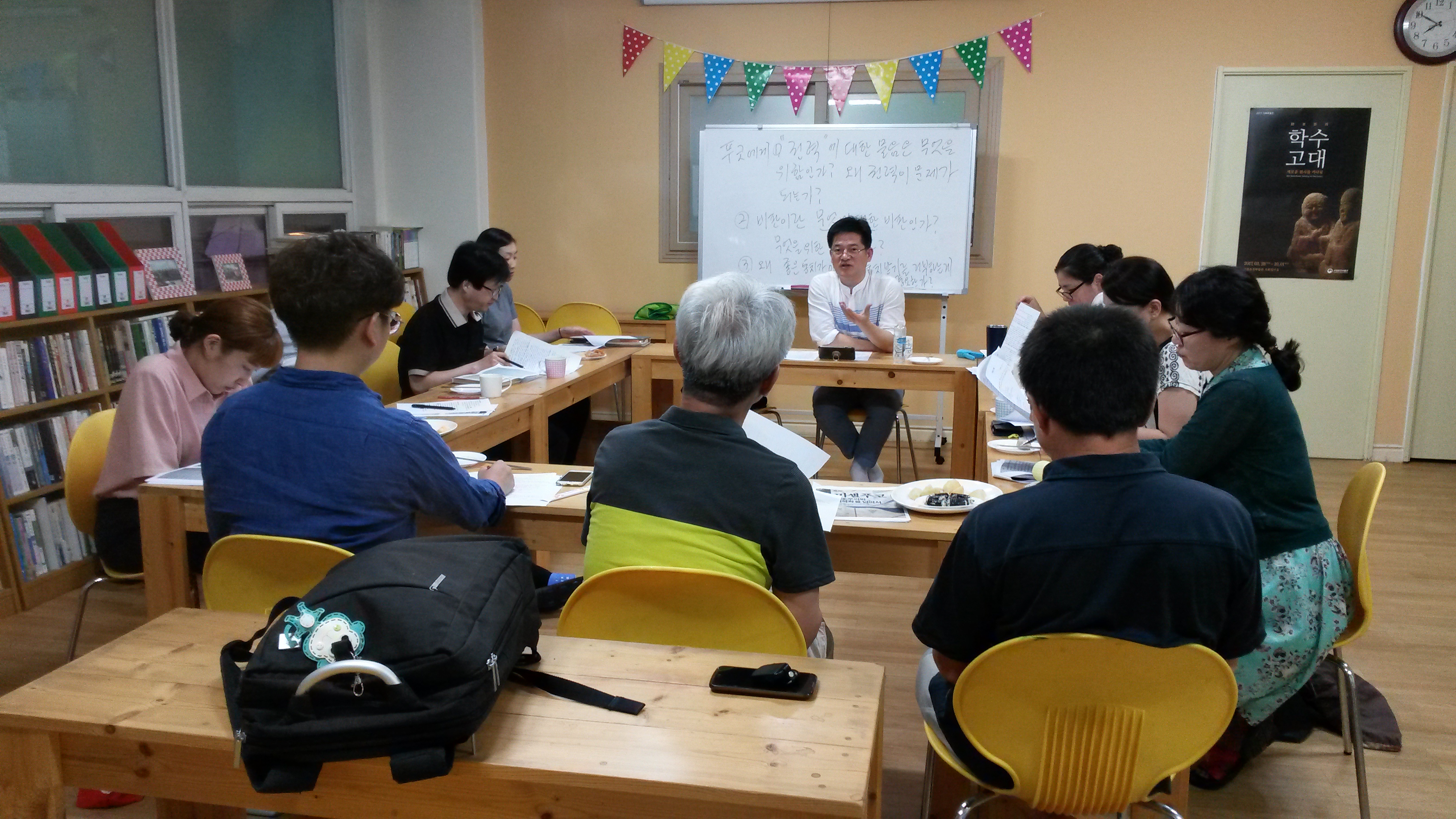 8월 3일(수) 저녁, 춘천시민연대에서 철학책모임 오픈강좌를 무사히 마쳤습니다. 김밥과 평소에 안 먹던 만두도 시켰는데 반응이 좋았습니다. 복숭아도 가져오셔서 먹거리가 더 많아졌고요^^// 예상치못한(?) 새로운 얼굴들이 여럿 와주셔서 ㅎㅎ~ 공개강좌한 보람이 느껴집니다. 뿌듯~ 게다가 연령대와 성비가 넓다는 것이 포인트! :) ...