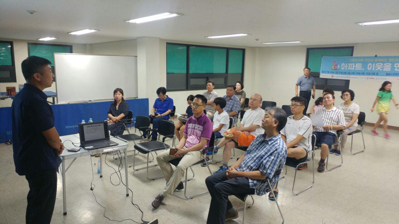 [아파트, 이웃을 만나다 - 강변코아루주민과 함께하는 열린강좌 3강] "나누고 배려하는 행복한 아파트" - 에너지 절약으로 경비원과 상생하는 아파트 만들기 8월 3일 목요일 저녁 8시, 석관동 두산아파트 전 입대위회장 심재철 샘이 강의해주셨습니다. 아파트 관리비를 줄여 경비노동자분들의임금을 올려드린 것으로 유명...