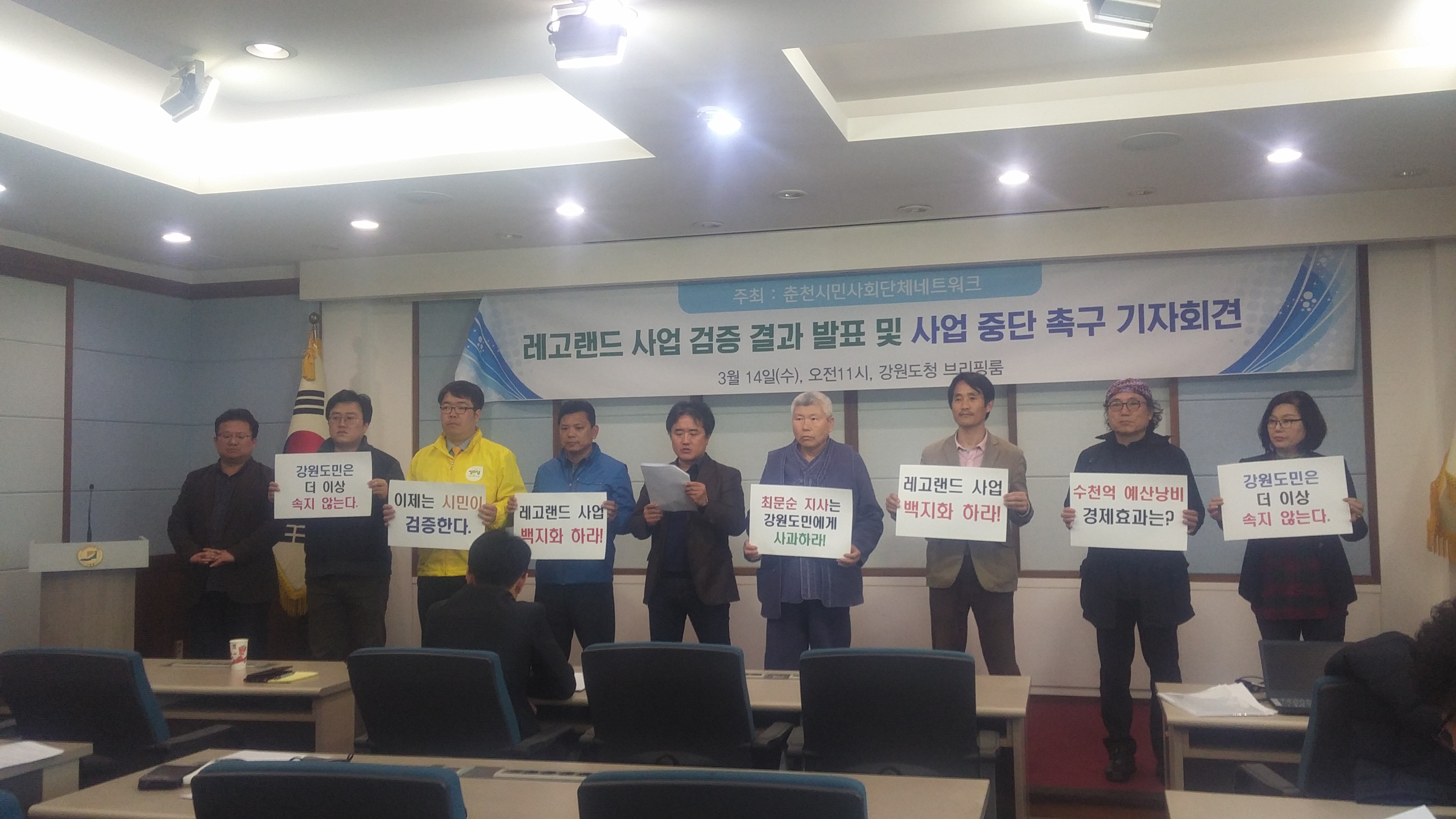- 주최 : 춘천시민사회단체네트워크 - 3월 14일 수요일 오전 11시, 도청 브리핑 룸에서 진행했습니다. 유성철 춘천시민연대 사무국장님이 기자회견 사회 및 취지설명을 해주시고, 권용범 춘천경실련 사무처장님이 ppt로 시민검증단의 검증결과를 발표해주셨습니다. 서대선 춘천환경운동연합 사무국장님이 기자회견문을 낭독해주셨습니다. 마지...