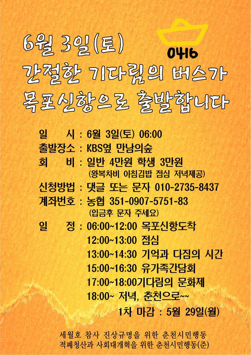 [춘천 팽목항행버스를 모집합니다 - 6월 3일]
